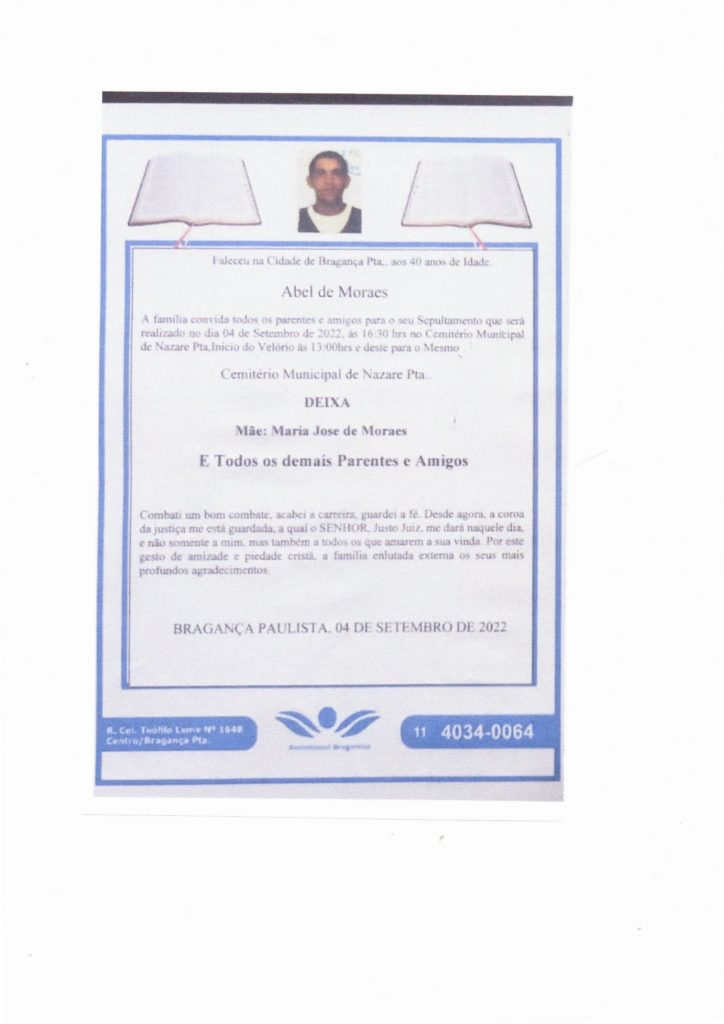 ABEL DE MORAES 4 de setembro de 20224 de setembro de 2022| Unidade Nazaré PaulistaUnidade Nazaré Paulista| 0 Comment | 13:26 Categories: Leave a Reply Cancelar respostaO seu endereço de e-mail não será publicado. Campos obrigatórios são marcados com *Comentário Nome * E-mail * Site Salvar meus dados neste navegador para a próxima vez que eu comentar.