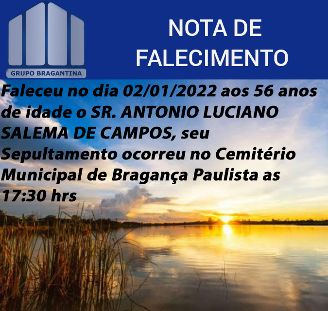 ANTONIO LUCIANO SALEMA DE CAMPOS 3 de janeiro de 20223 de janeiro de 2022| Unidade BragançaUnidade Bragança| 0 Comment | 14:01 Categories: Leave a Reply Cancelar respostaO seu endereço de e-mail não será publicado. Campos obrigatórios são marcados com *Comentário Nome * E-mail * Site Salvar meus dados neste navegador para a próxima vez que eu comentar.