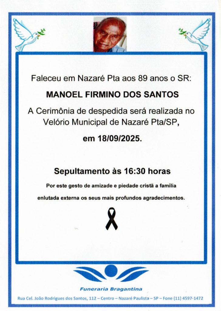 MANOEL FIRMINO DOS SANTOS 16 de outubro de 202516 de outubro de 2025| Unidade Nazaré PaulistaUnidade Nazaré Paulista| 0 Comment | 14:40 Categories: Leave a Reply Cancelar respostaO seu endereço de e-mail não será publicado. Campos obrigatórios são marcados com *Comentário Nome * E-mail * Site Salvar meus dados neste navegador para a próxima vez que eu comentar.