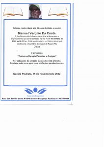 MANOEL VIRGILIO DA COSTA 15 de dezembro de 202215 de dezembro de 2022| Unidade Nazaré PaulistaUnidade Nazaré Paulista| 0 Comment | 10:50 Categories: Leave a Reply Cancelar respostaO seu endereço de e-mail não será publicado. Campos obrigatórios são marcados com *Comentário Nome * E-mail * Site Salvar meus dados neste navegador para a próxima vez que eu comentar.