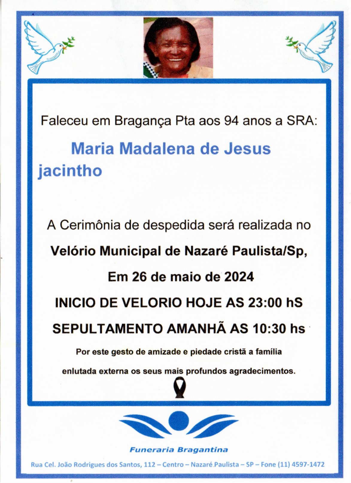 MARIA MADALENA DE JESUS JACINTHO 3 de junho de 20243 de junho de 2024| Unidade Nazaré PaulistaUnidade Nazaré Paulista| 0 Comment | 16:41 Categories: Leave a Reply Cancelar respostaO seu endereço de e-mail não será publicado. Campos obrigatórios são marcados com *Comentário Nome * E-mail * Site Salvar meus dados neste navegador para a próxima vez que eu comentar.