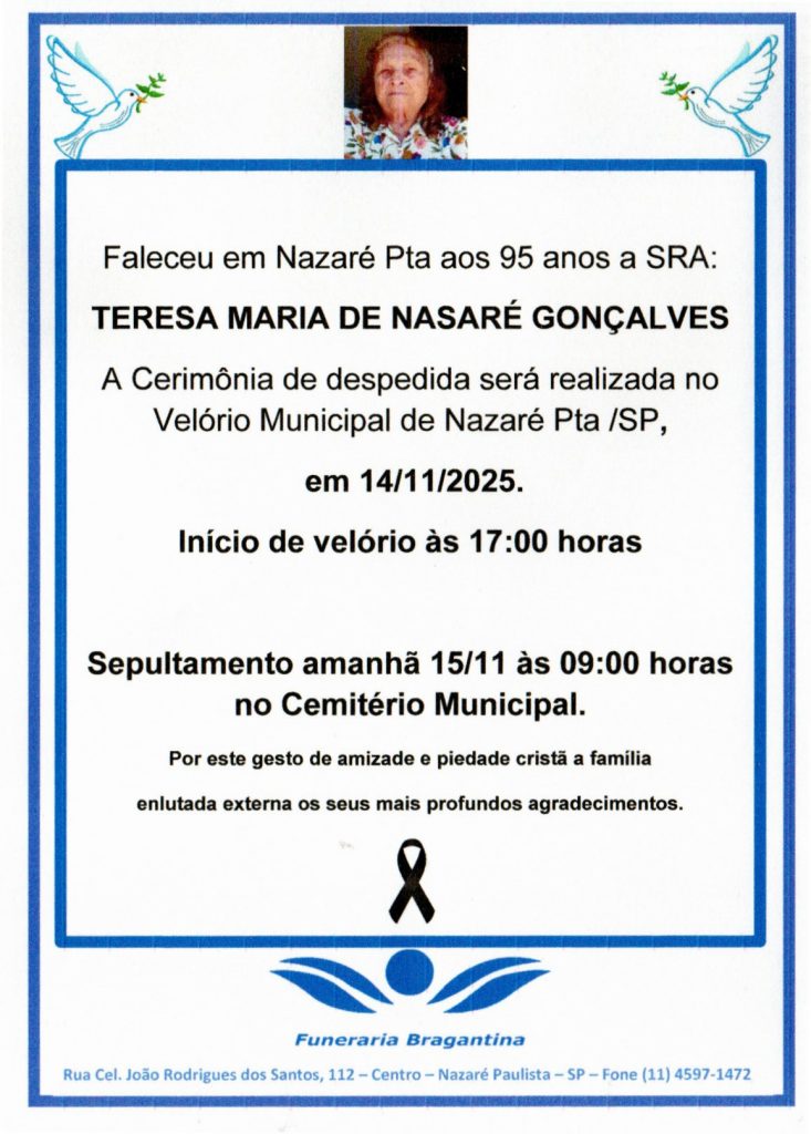 TERESA MARIA DE NAZARÉ GONÇALVES 25 de novembro de 202525 de novembro de 2025| Unidade Nazaré PaulistaUnidade Nazaré Paulista| 0 Comment | 09:15 Categories: Leave a Reply Cancelar respostaO seu endereço de e-mail não será publicado. Campos obrigatórios são marcados com *Comentário Nome * E-mail * Site Salvar meus dados neste navegador para a próxima vez que eu comentar.