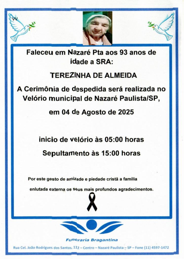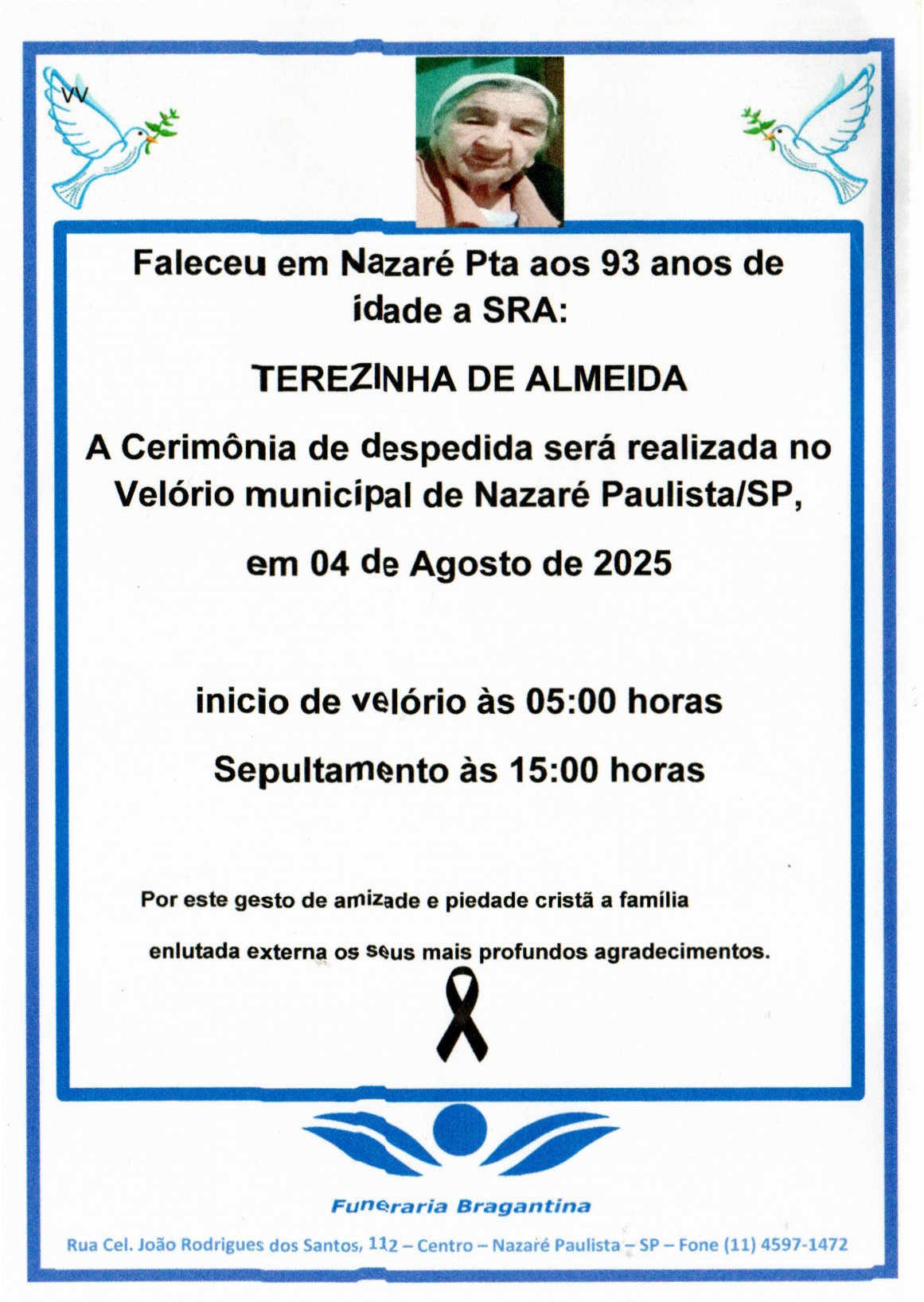 TEREZINHA DE ALMEIDA 4 de agosto de 20254 de agosto de 2025| Unidade Nazaré PaulistaUnidade Nazaré Paulista| 0 Comment | 15:10 Categories: Leave a Reply Cancelar respostaO seu endereço de e-mail não será publicado. Campos obrigatórios são marcados com *Comentário Nome * E-mail * Site Salvar meus dados neste navegador para a próxima vez que eu comentar.