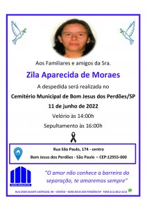 ZILA APARECIDA DE MORAES 11 de junho de 202211 de junho de 2022| Unidade Bom JesusUnidade Bom Jesus| 0 Comments | 06:47 Categories: 1 thought on “ZILA APARECIDA DE MORAES” Meus pêsames 😢 que Deus conforte os corações de todos os familiares e amigos. Responder Leave a Reply Cancelar respostaO seu endereço de e-mail não será publicado. Campos obrigatórios são marcados com *Comentário Nome * E-mail * Site Salvar meus dados neste navegador para a próxima vez que eu comentar.